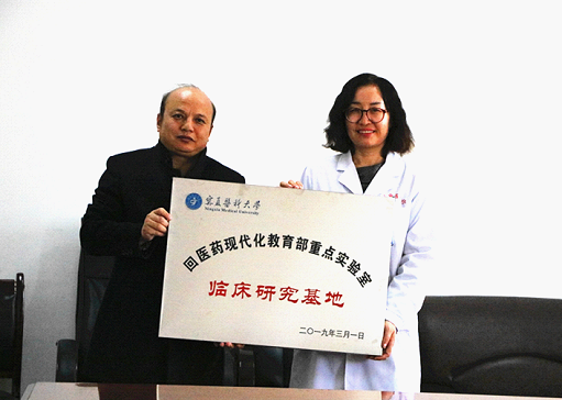 重点实验室常务副主任马英锋副教授宣读了“关于重点实验室2019年度研究基地挂牌的决定”的文件,随后,将“重点实验室临床研究基地”授牌于中医医院银川医院杜小利院长。