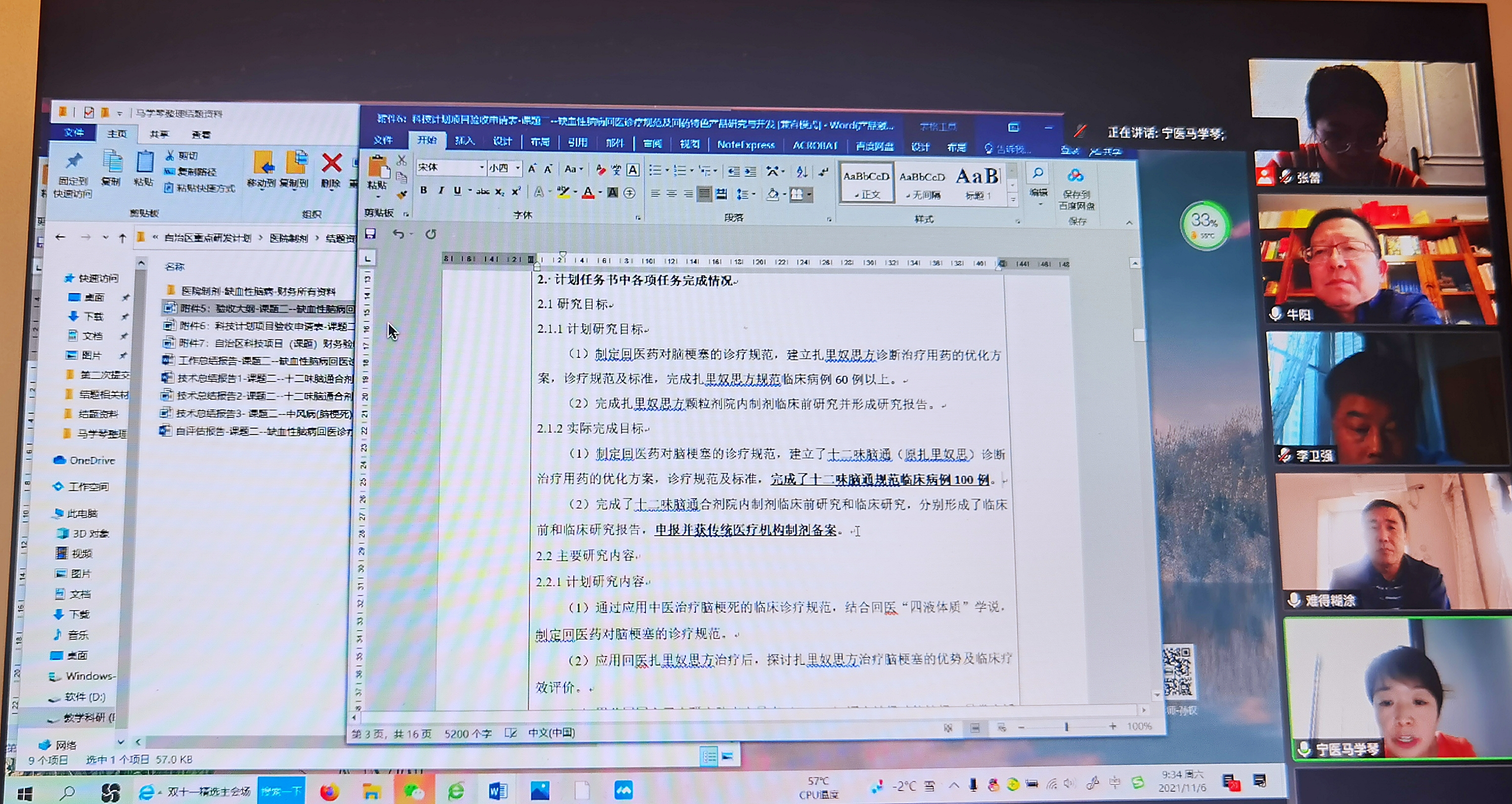 11月6日上午,实验室举行了“宁夏少数民族医优势病种诊疗规范及特色产品开发研究”项目结题视频会议,项目负责人和各课题负责人参加了会议。