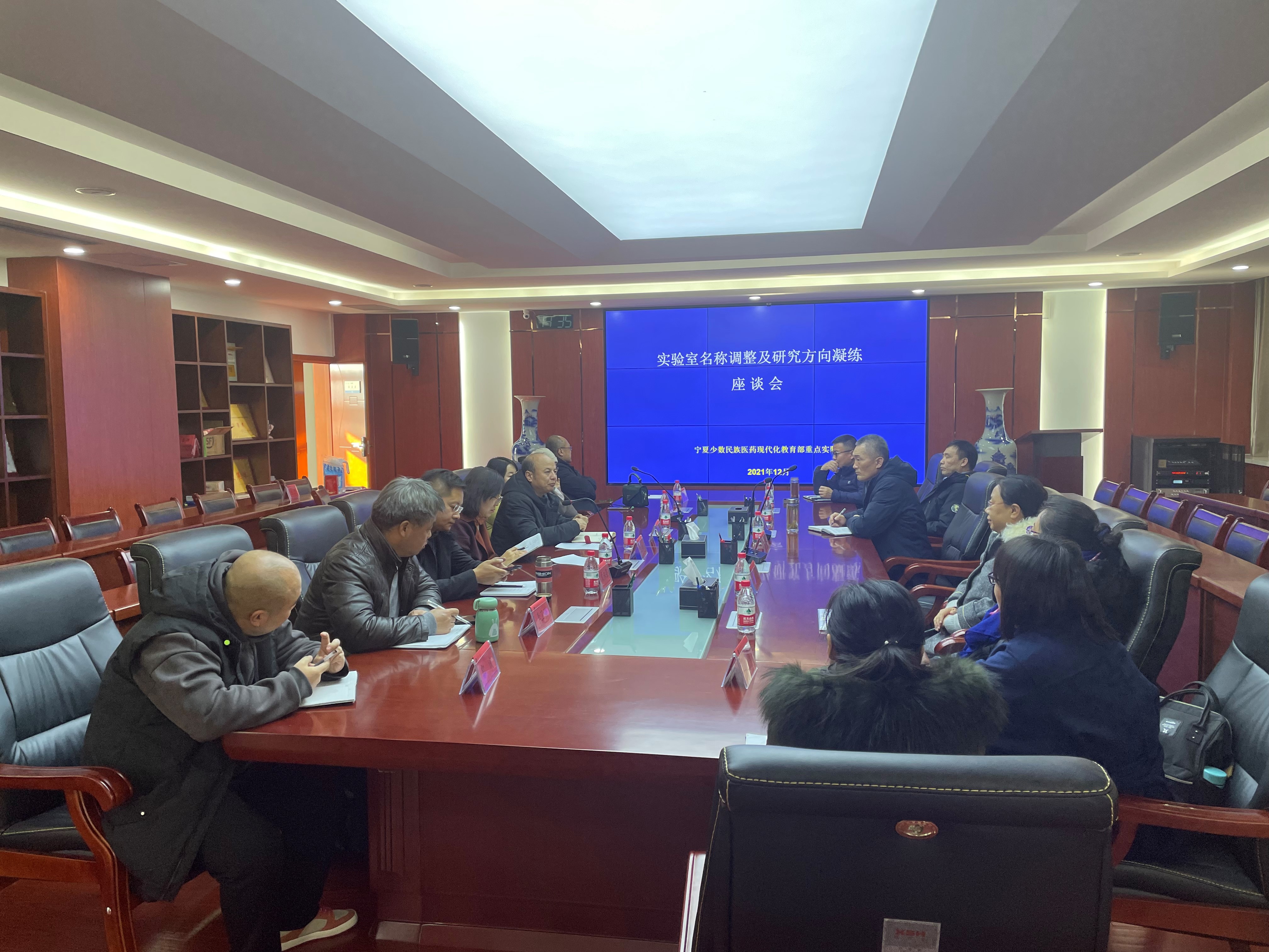 12月21日下午,实验室举行了教育部重点实验室名称调整及研究方向凝练交流座谈会。旨在讨论教育部重点实验室名称调整及研究方向事宜。宁夏少数民族医药现代化教育部重点实验室团队成员及实验室工作人员共16人参加了座谈。