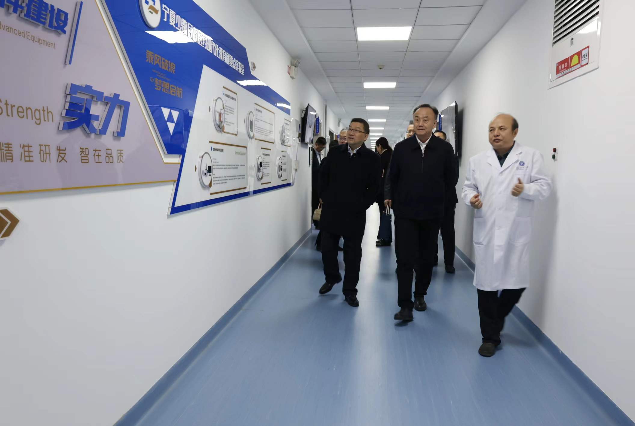一行到重点实验室参观,学校党委书记田丰年、党委副书记朱建华、中医学院领导陪同。