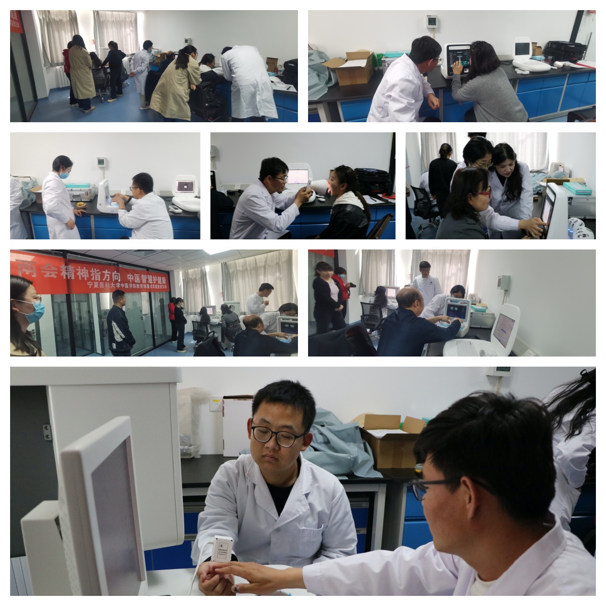 活动以"理论研学+科技服务"形式展开。党员集体学习2025年两会关于中医药发展的战略部署,围绕"传承创新""科技赋能"等主题开展理论学习。依托实验室新升级的"舌面脉信息采集体质辨识系统",为师生提供舌象、面象、脉象三维体质检测,生成个性化健康报告。通过智能舌诊仪、高清面象仪、脉象传感器等现代设备,结合《望诊遵经》《灵枢·五色篇》等传统理论,实现"辨体-施膳-养生"全链条服务。