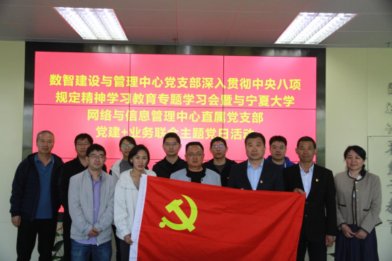 4月24日,数智建设与管理中心党支部前往宁夏大学,与宁夏大学网络信息与管理中心直属党支部共同举办了深入贯彻中央八项规定精神学习教育专题学习会以及党建与业务相结合的主题党日活动。两个支部的十余名党员积极参与此次活动。