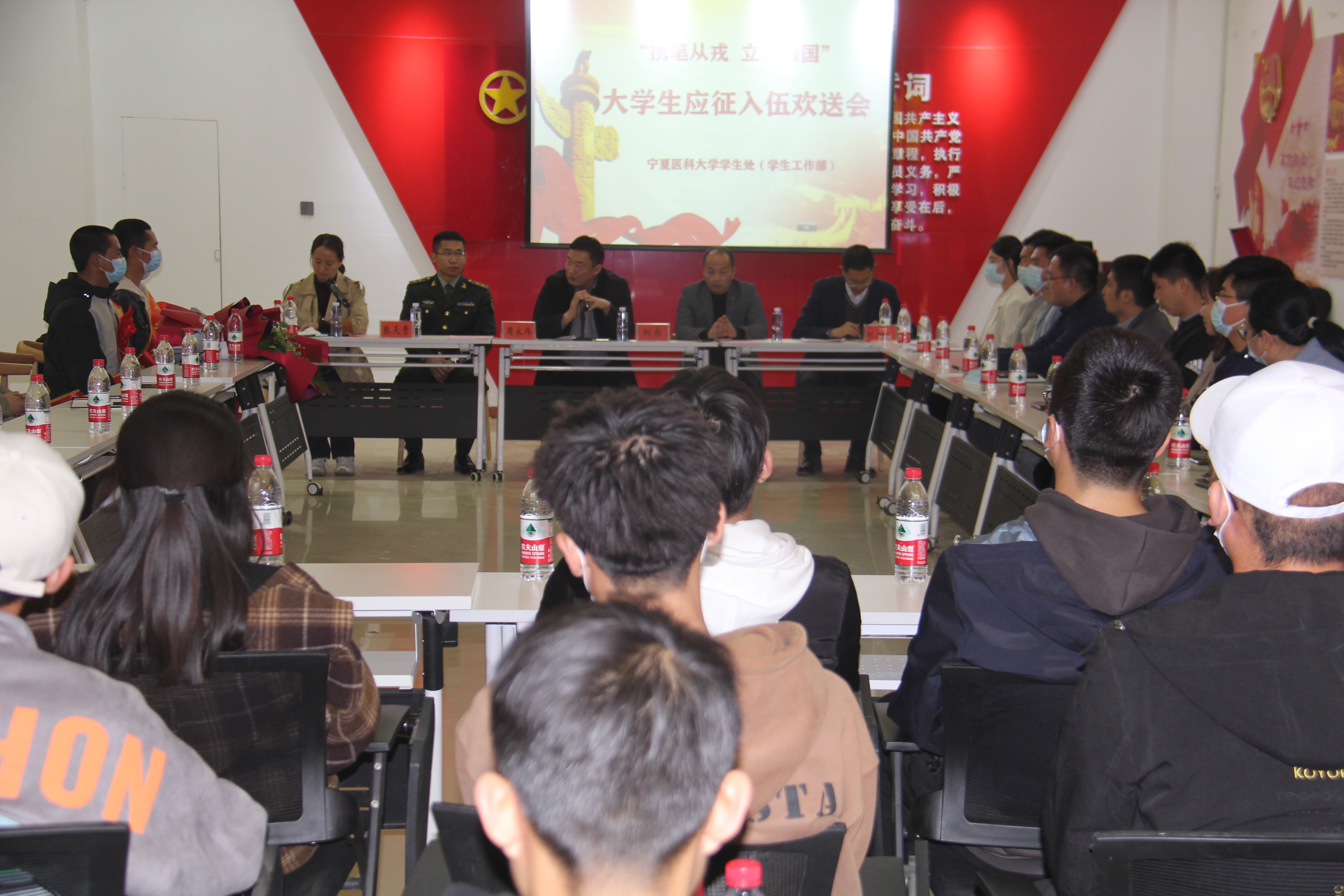 3月16日下午,“携笔从戎 立志报国”伟德国际1946源于英国2021年春季应征入伍大学生欢送会于大学生活动中心举行,兴庆区武装部张天贵参谋,学校学生处(学生工作部)、招生就业处、团委负责人,相关学院分管学生工作副书记、学办主任、辅导员,新入伍学生、退役复学学生及普通学生代表共计60余人参加欢送会。会议由学生处(学生工作部)副处长李亚红主持。