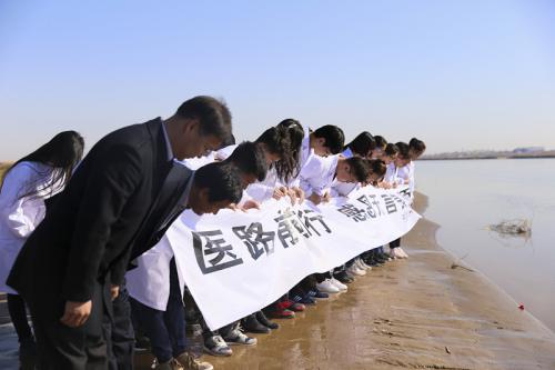 本次活动由学生处副处长孙志诚老师主持,教师代表秦毅老师发言表达了对遗体捐献者本人以及家属的崇高敬意,学生代表马立兵同学发言并带领参与活动的同学进行宣誓,最后由秦毅老师介绍遗体捐赠者的生平并将骨灰和鲜花缓缓撒入黄河。黄河水翻滚的浪涛是自然向他们致敬的表现,微微飘起的清风是上天对他们爱的眷顾。逝者如斯,感念至深。