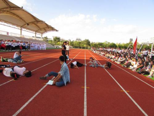 为庆祝中国人民抗日战争暨世界反法西斯战争胜利70周年,9月5日下午,护理学院学生公寓党支部在雁湖校区体育场组织开展了“牢记历史 振兴中华”主题教育活动。学院辅导员老师及2013级、2014级全体同学共700余人参加此次活动。
