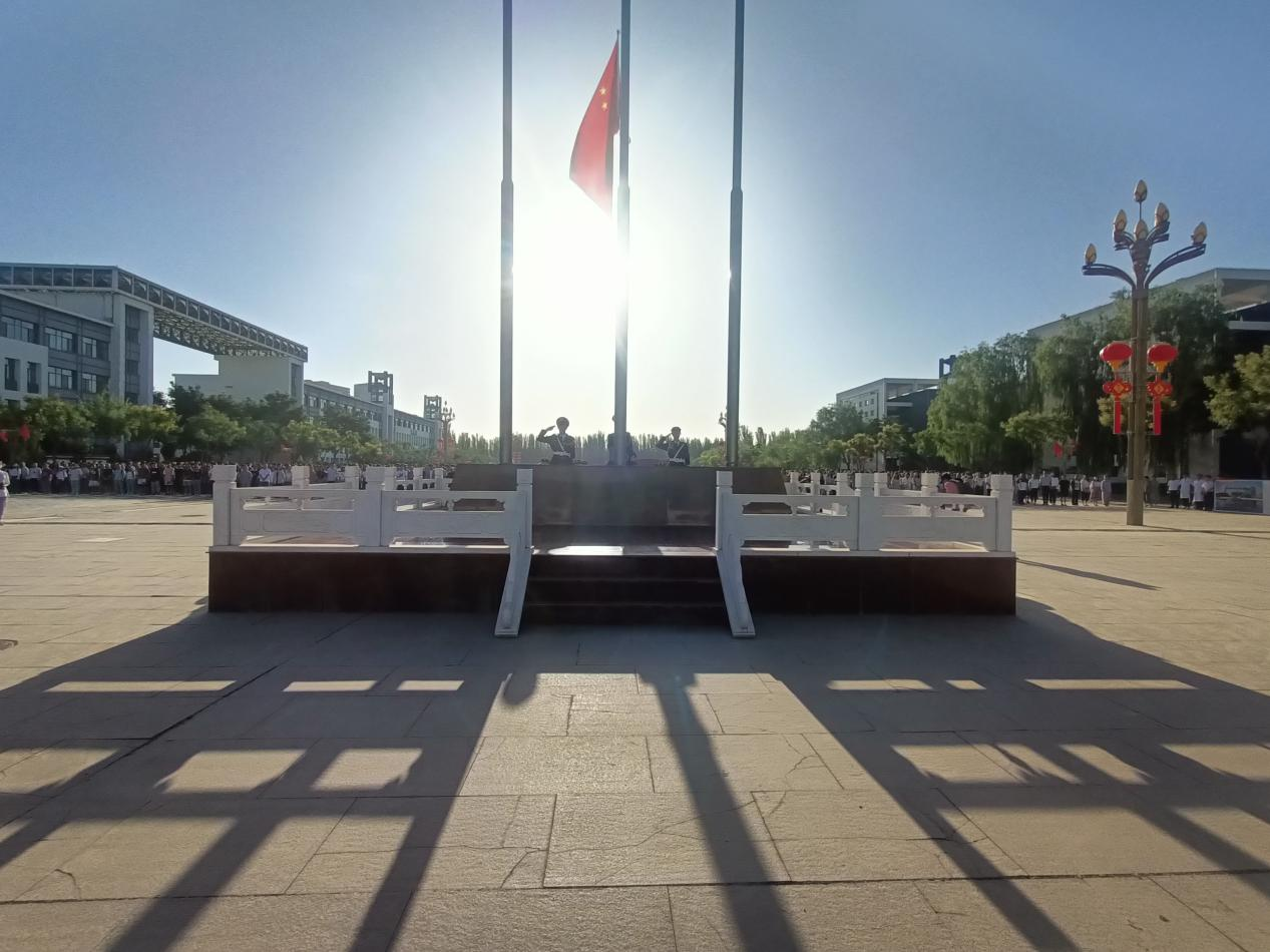 为热烈庆祝中国共产党成立100周年,7月1日上午7:20学校在雁湖校区、双怡校区同时举行了“以青春之我 向党深情告白”主题升国旗仪式,新疆驻宁夏工作组党委书记、教育协调组组长李有亮,学校党委副书记朱建华出席本次仪式,全体学工人员及全体在校生共五千余人参加。