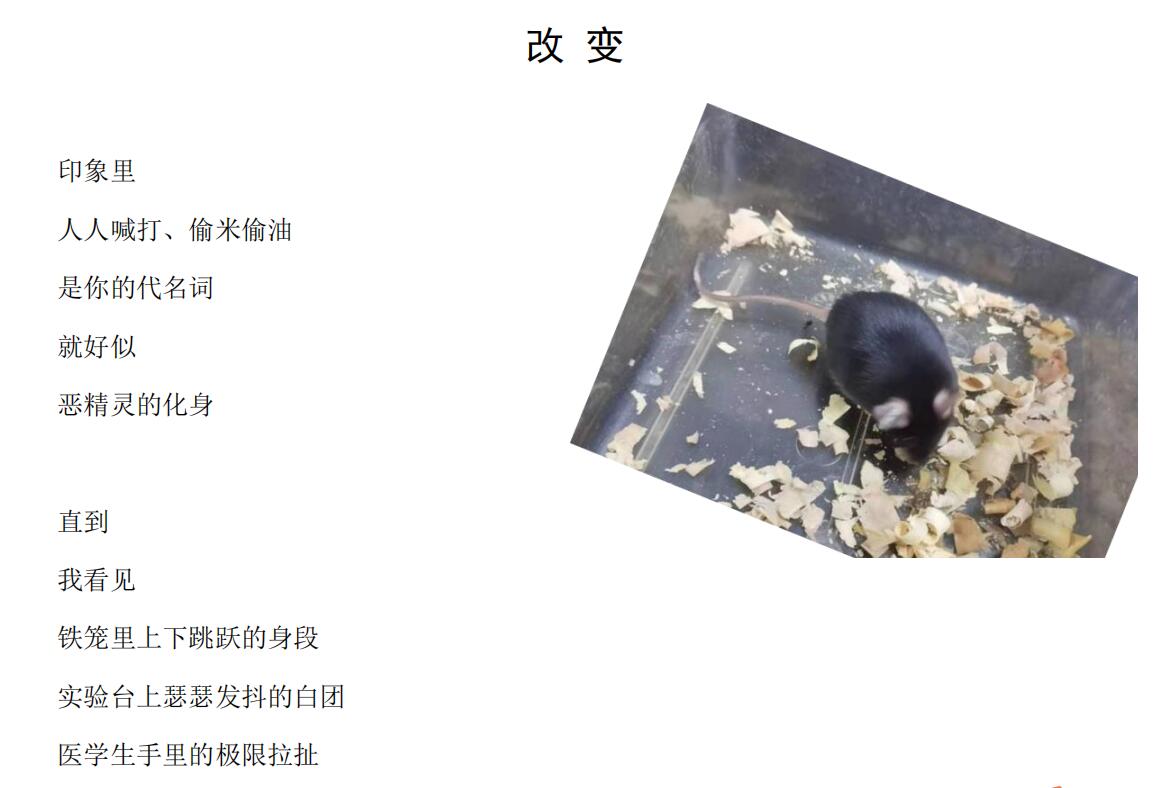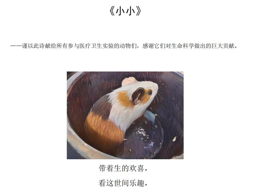 为提高广大师生尊重与保护实验动物的意识,2022年3月22日——4月4日,基础医学院面向全校在读本专科学生开展了首届“厚生杯”“我与实验动物的故事”诗歌征集评选活动。