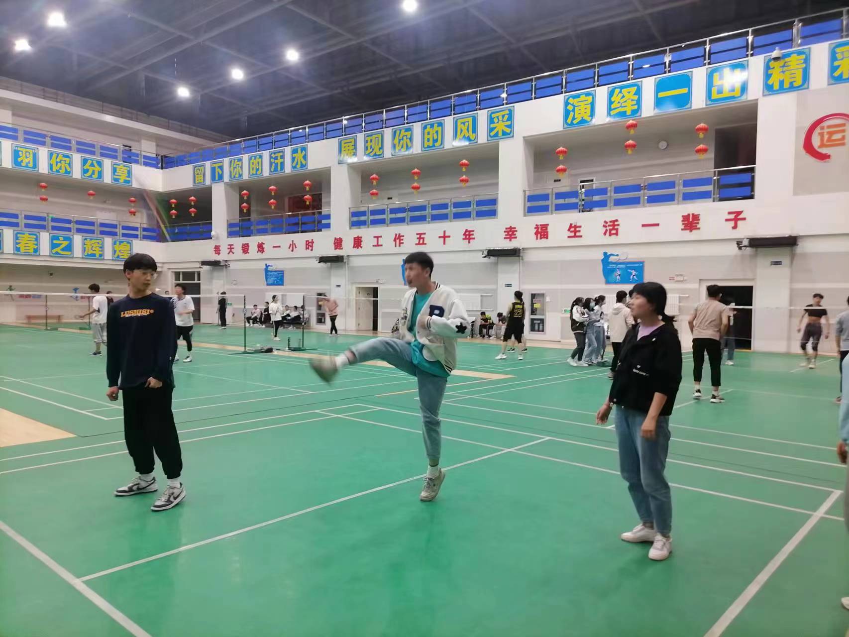 4月27日——5月4日,为促进学校阳光体育运动的蓬勃发展,全面开展学院“三走”活动,不断增强学生身体素质和体育精神,基础医学院在雁湖校区体育馆组织全院各班级举办了“迎五四 展风采”毽球比赛。