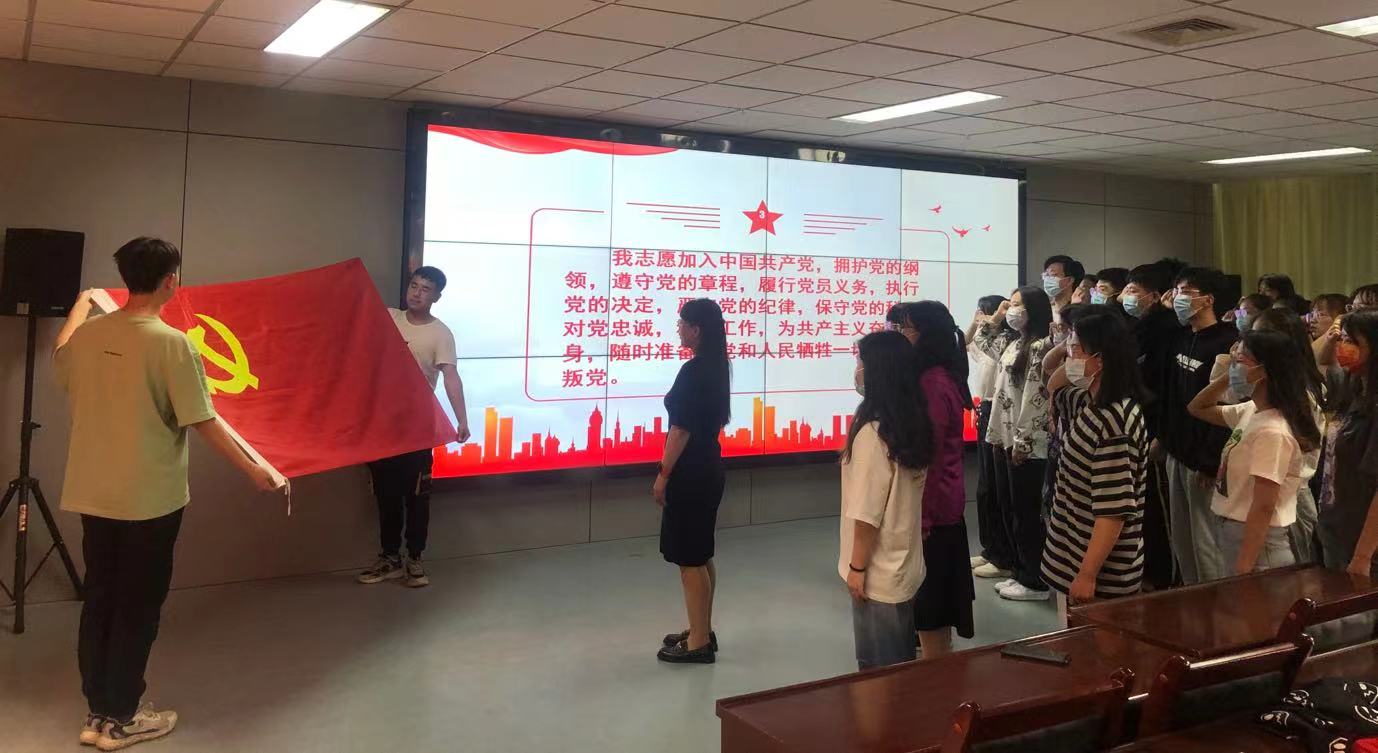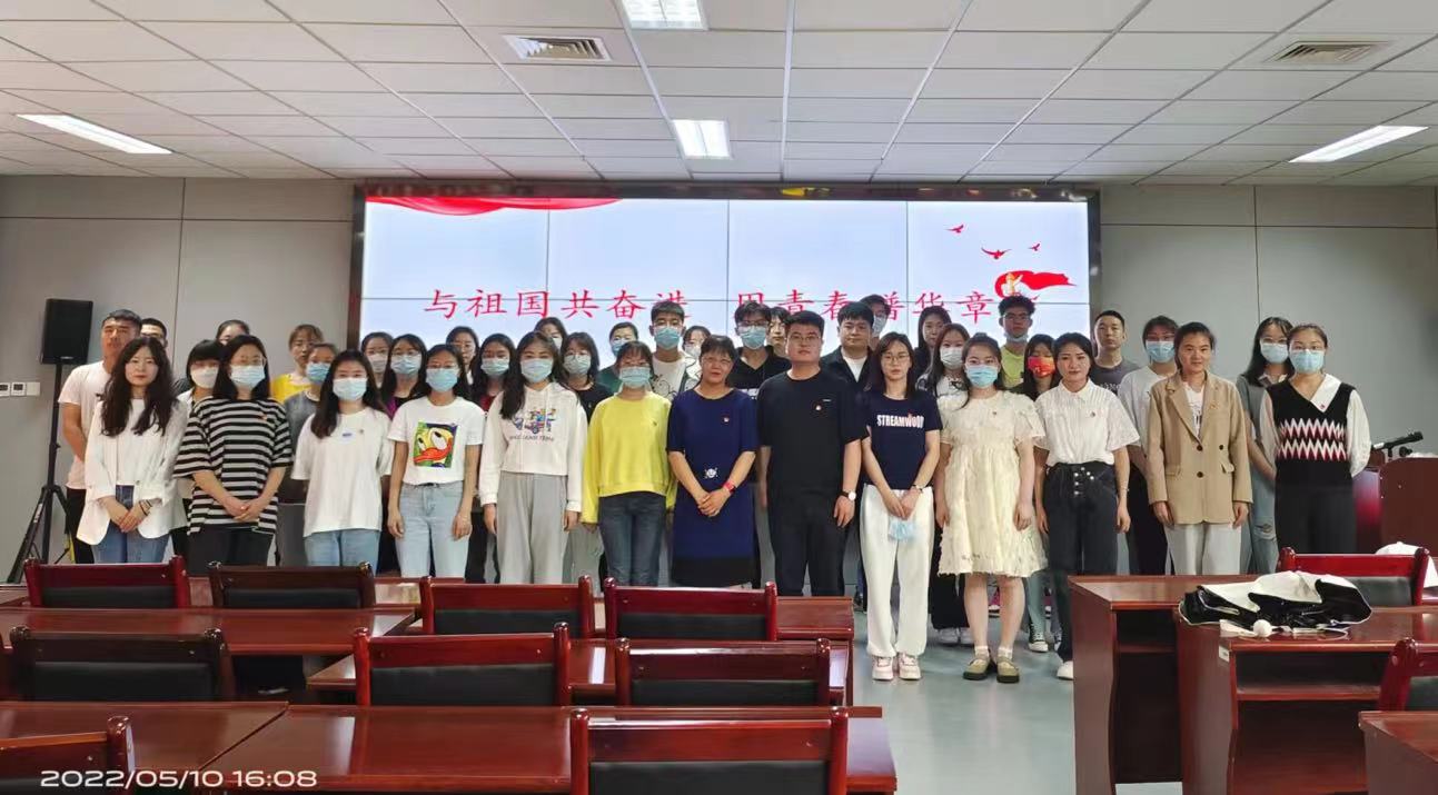 本次活动主要有三项内容,第一项内容是观看五四青年节推荐影片《重逢》。通过影片学习边境英雄肖思远烈士不畏牺牲,爱国爱党的优秀精神品质,同时,引发同学们思考“青春是什么”,以此启发党员同志坚定理想信念,践行初心使命,实现自身价值。第二项内容是品读“五四”诗词,党支部成员杨森、黑金娟、张星、李菲、李进花依次分享了《青春》、《翻开五月的日历》、《五四礼赞》、《五四有感》、《忆五四》等诗词,用铿锵有力的朗诵展现了他们对先辈的赞颂。活动第三项,由学院党委副书记张艳丽带领全体党员重温入党誓词,并为新党员佩戴党徽。
