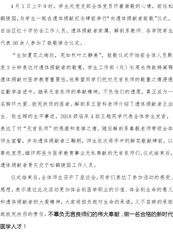 学生处党支部开展向遗体捐献者致敬活动