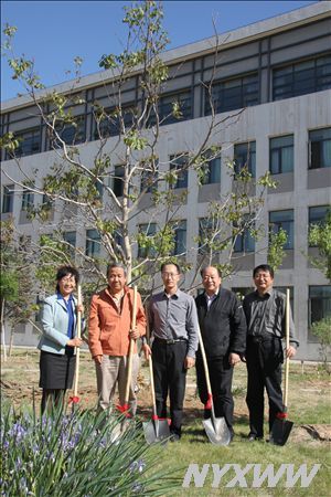 校友在新植的树前合影