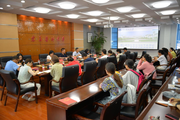 7 月7日上午,博士研究生学习习近平总书记“七一”重要讲话精神座谈会在正德楼226会议室召开,学校党史学习教育第二督导组副组长、党委统战部部长张生应邀参加,博士研究生代表、辅导员代表、研究生院全体人员参加会议。座谈会由研究生院直属党支部书记张海峰主持。