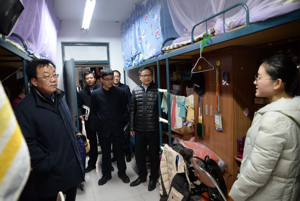 12月11日上午,学校党委副书记刘庆武,副校长易刚强、姜怡邓带领研究生院(研究生工作部)、保卫处、后勤管理处、实验室与装备服务中心负责人先后对雁湖校区研究生宿舍、基础医学院实验室、生育力保持重点实验室进行检查,并与相关师生进行交谈,深入了解排查研究生在学习、科研、生活等方面的存在安全隐患,并在检查后召开研究生安全管理工作会议。会议由姜怡邓副校长主持。