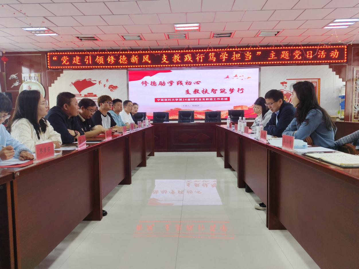 捐赠仪式后,研究生院直属党支部、团委党支部与高沙窝中心小学党支部联合开展“党建引领修德新风支教践行笃学担当”主题党日活动。研支团成员围绕“教育帮扶与基层治理”分享实践经验,既有课堂教学的创新探索,也有心理健康辅导的暖心故事,充分展现了研究生支教团将医学专业知识融入日常教学的创新实践。