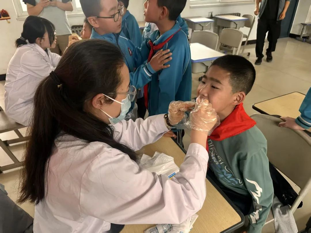 依托医学高校学科优势,研究生院组织口腔及眼科研究生志愿者团队为师生开展健康宣教及义诊活动,志愿者们通过趣味动画演示、互动模型教学等方式,系统讲解日常卫生保健知识,为全体学生进行了视力筛查、口腔健康检查等专项服务。“通过早发现、早干预,帮助孩子们养成良好健康习惯。”志愿者团队负责人表示,此次活动将医学专业服务延伸至乡村校园,既是“健康中国”战略的基层实践,更是研究生院将学科优势转化为为民服务的具体行动。
