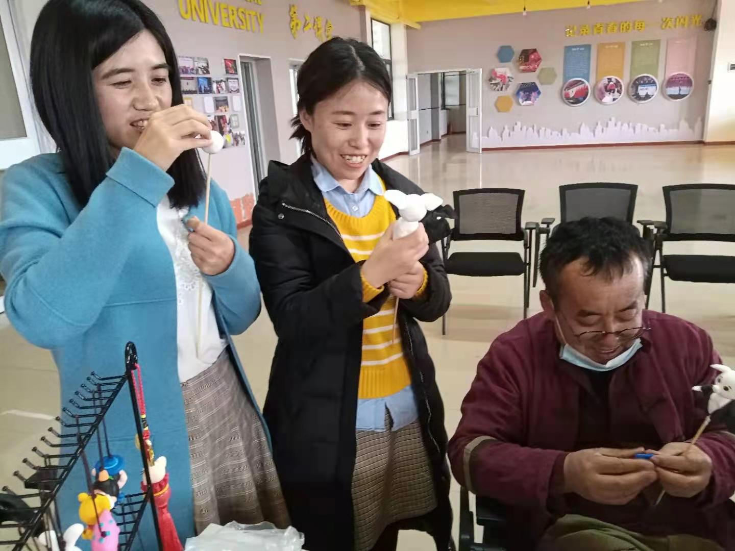 此次活动邀请了四位非物质文化遗产传承人前来授课,葫芦烙画传承人陈湘军、剪纸技艺传承人赵建萍、绳结编织技能传承人樊小兰、面塑艺术传承人殷海亮,各位老师将将各种传承的历史、分类、题材、常用方法等知识以及各类优秀剪纸作品展示,边示范边讲解边指导大家制作常用又简单的作品。