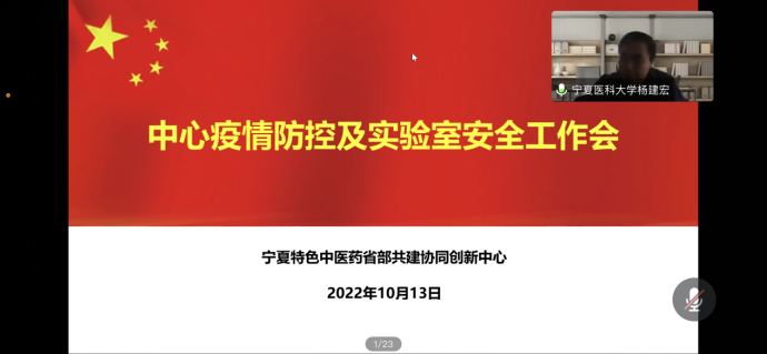 2022年10月13日下午,宁夏特色中医药省部共建协同创新中心召开疫情防控及实验室安全工作视频会议,教师和研究生200多人参加。