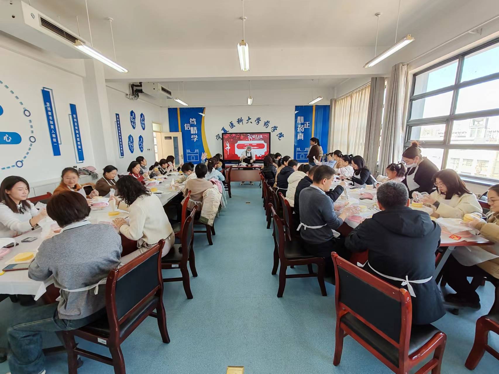 为庆祝第114个“三八”国际劳动妇女节,药学院分工会于3月8日中午组织女教师开展“感恩有你 与爱同行 ‘三八’国际劳动妇女节”蛋糕DIY活动,旨在丰富女教师的精神文化生活,展宁医药学女性风采,聚巾帼向上力量。