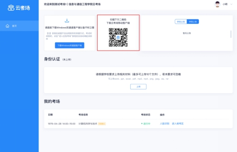 使用智能手机扫描二维码下载云考场客户端,根据步骤进行安装APP(副设备云监考使用)。