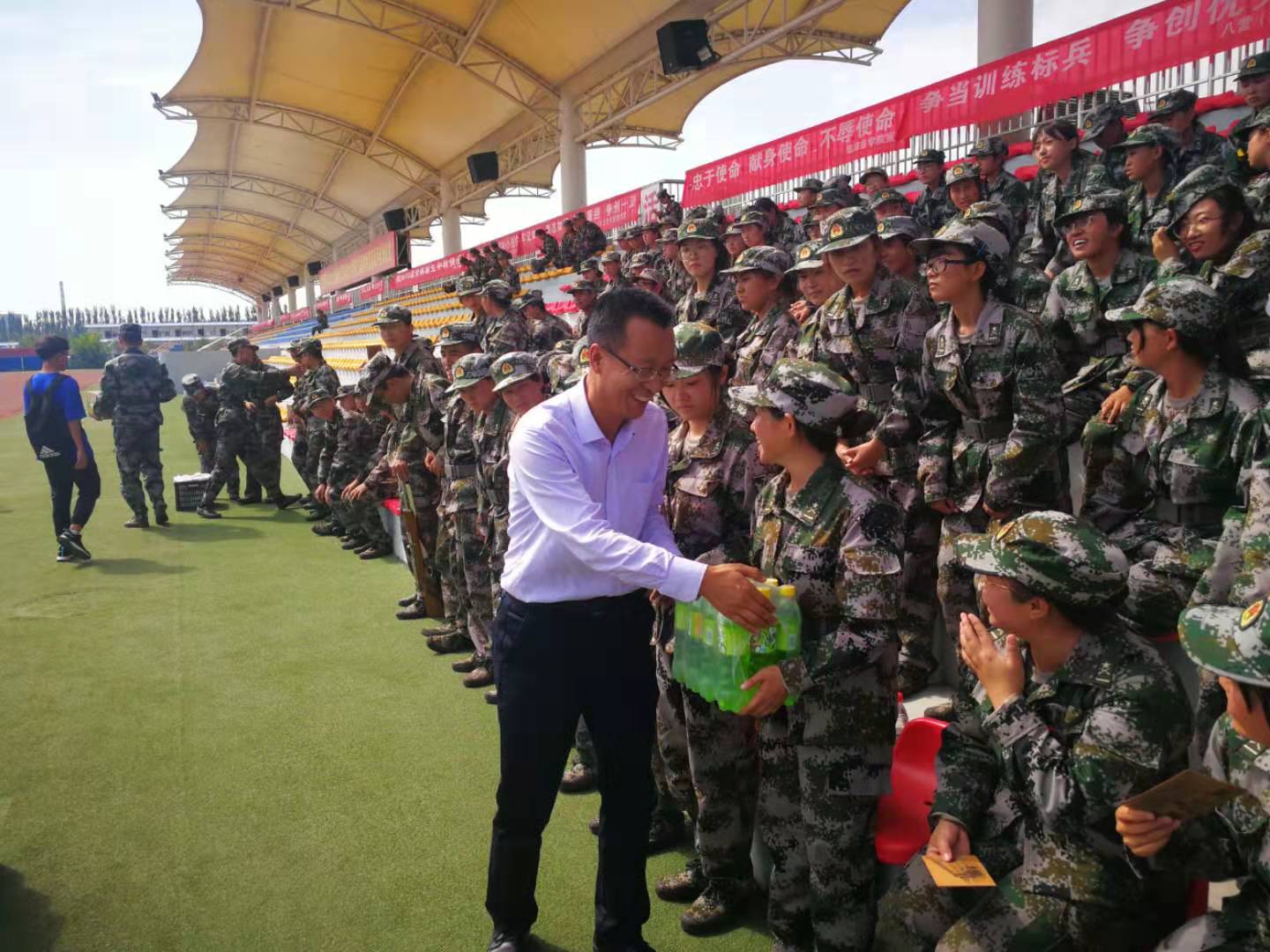 9月18日,药学院师生代表在雁湖校区体育场对正在进行军事训练的新生和教官进行了慰问。学院党委书记孙冬梅、副书记魏银军、辅导员、新生班主任、带班学长等参加活动。