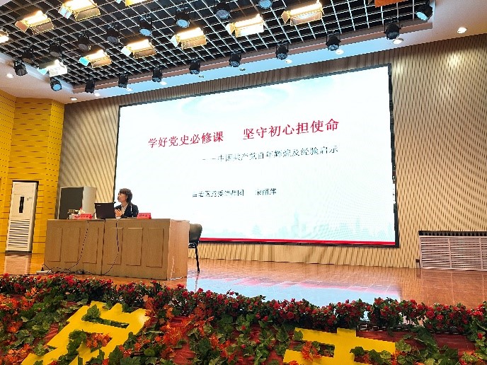动员大会结束后,自治区党委宣传部讲师团宋丽萍老师为全体参会人员做了“学好党史必修课 坚守初心担使命”专题讲座,从重大意义、百年辉煌、历史启示、贯彻落实四个方面讲述中国共产党的光辉历史,为全院师生学好党史、用好党史提供系统性的指导。