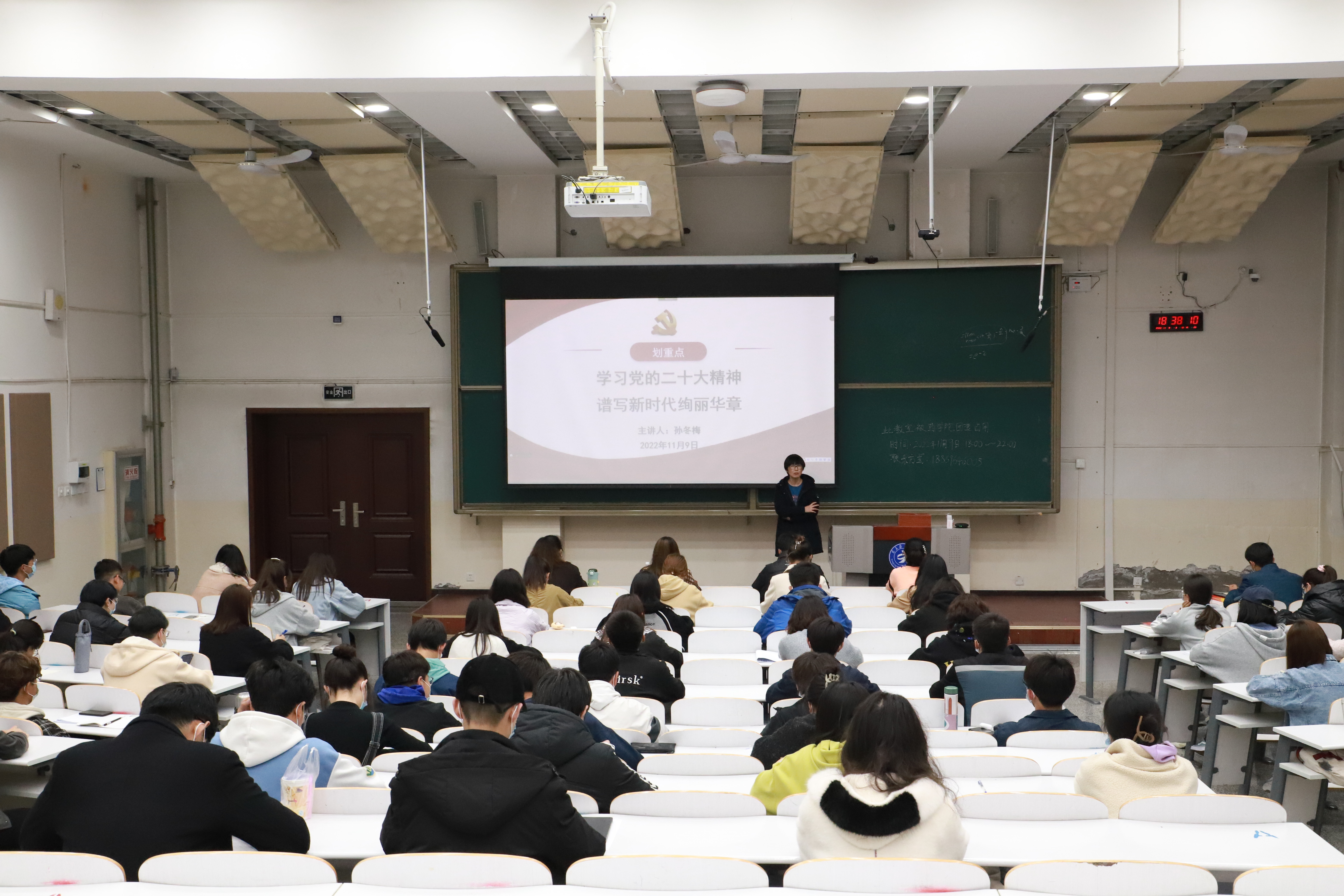 孙冬梅结合习近平总书记在二十大报告中提出的一系列新观点、新论断、新思想、新战略和新要求进行讲解,引导同学们深入学习宣传贯彻党的二十大精神,牢记新时代新征程党的光荣使命和历史任务,坚定理想信念,强化使命担当,不断加强专业知识学习,提升科技创新能力,为全面建设社会主义现代化国家、全面推进中华民族伟大复兴而团结奋斗。