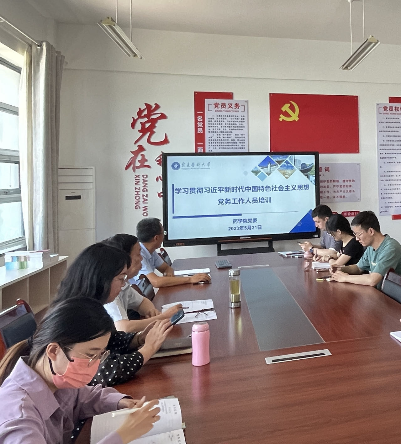 为扎实推进学习贯彻习近平新时代中国特色社会主义思想主题教育,提升党务人员的业务水平,5月31日,药学院在润德楼举办党务工作人员培训会,各党支部书记、委员参加培训。