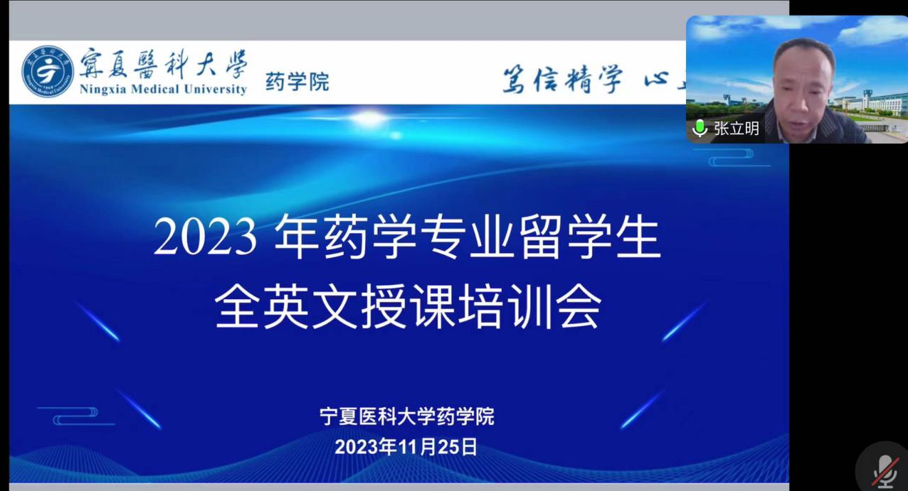 为不断提高留学生全英文教育教学水平,11月25日,药学院在腾讯会议举办2023年药学留学生全英文授课培训会,各学系主任及全体专兼职教师参会,培训会由学院常务副院长张立明主持。