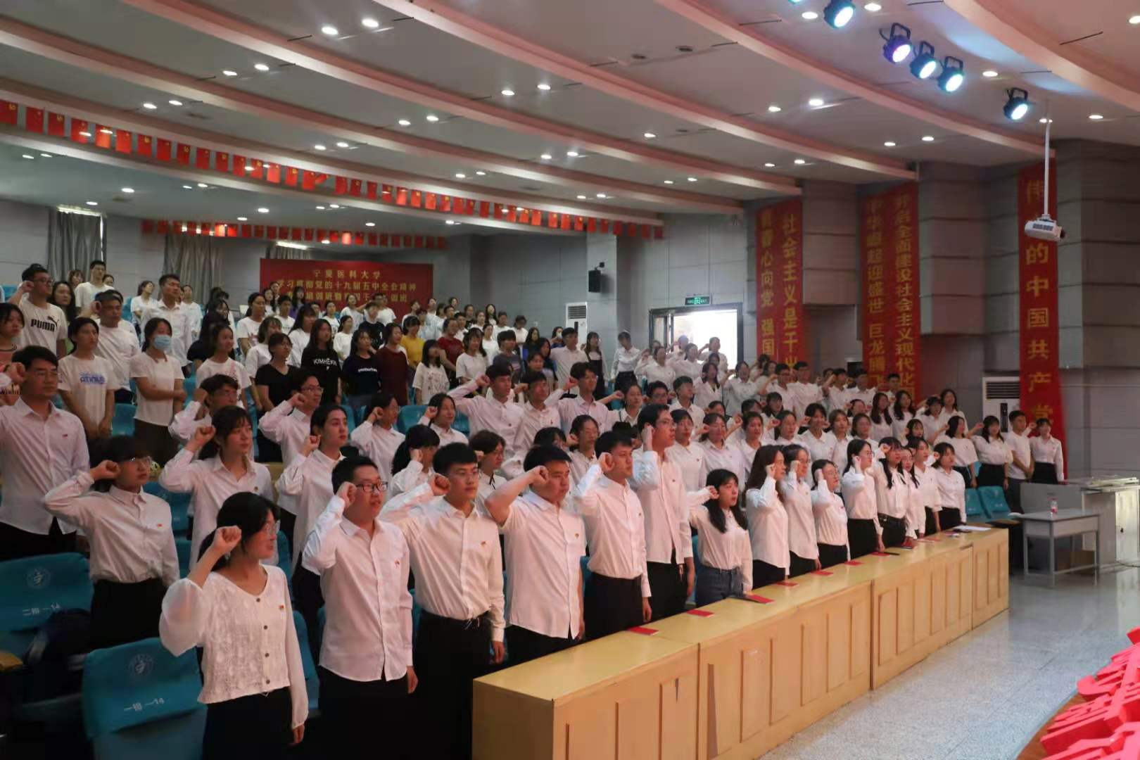 为增强党员政治意识,坚定理想信念,7月1日下午,药学院党委在教学楼启思学术报告厅举办新党员入党宣誓仪式,学院领导、学生党支部书记以及本专研学生党员和入党积极分子200多人参加了本次入党宣誓仪式。