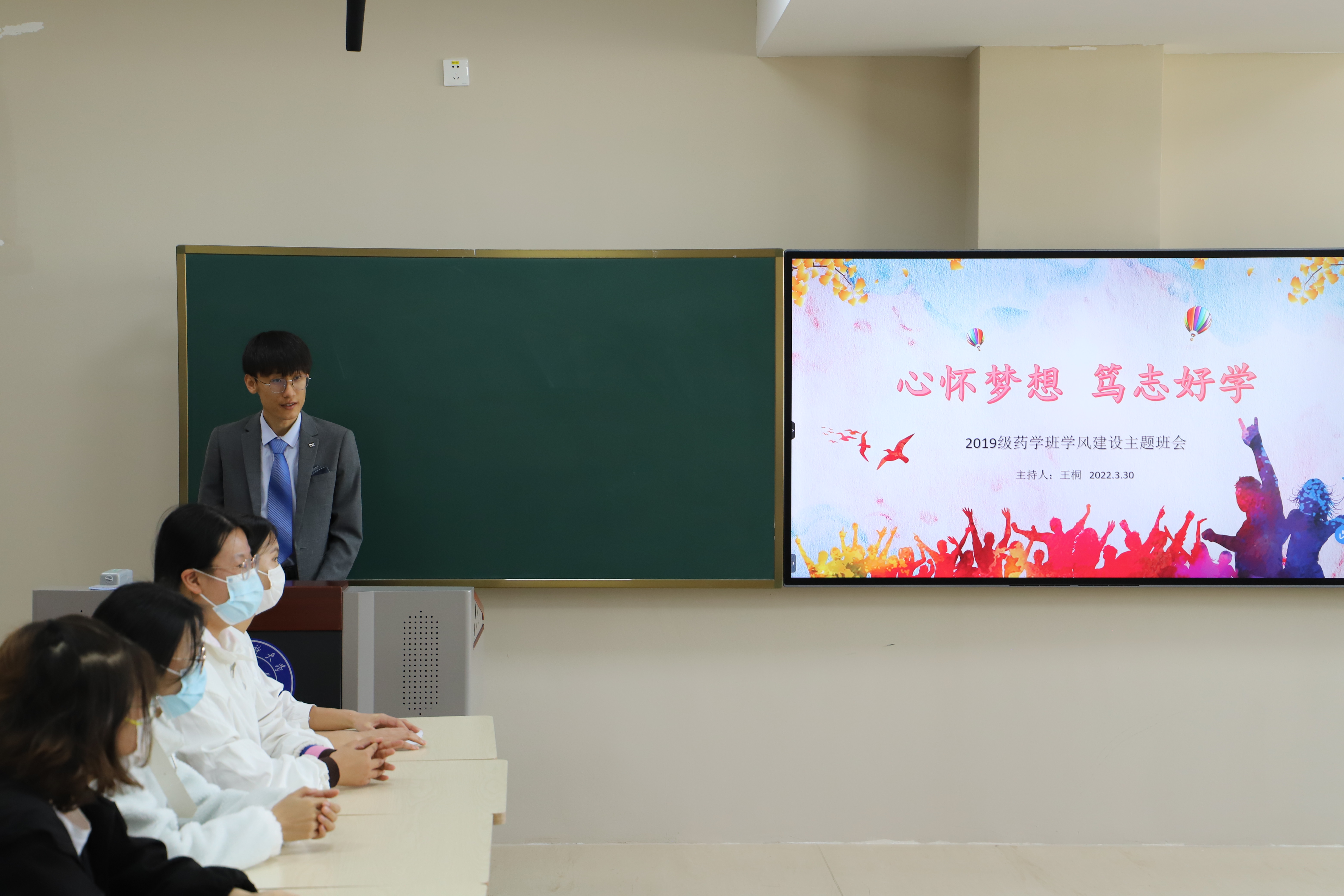 3月30日上午,学校校长姜怡邓参加了2019级药学班“心怀梦想 笃志好学”学风建设主题班会活动,办公室、学生处和药学院相关领导一同参加。