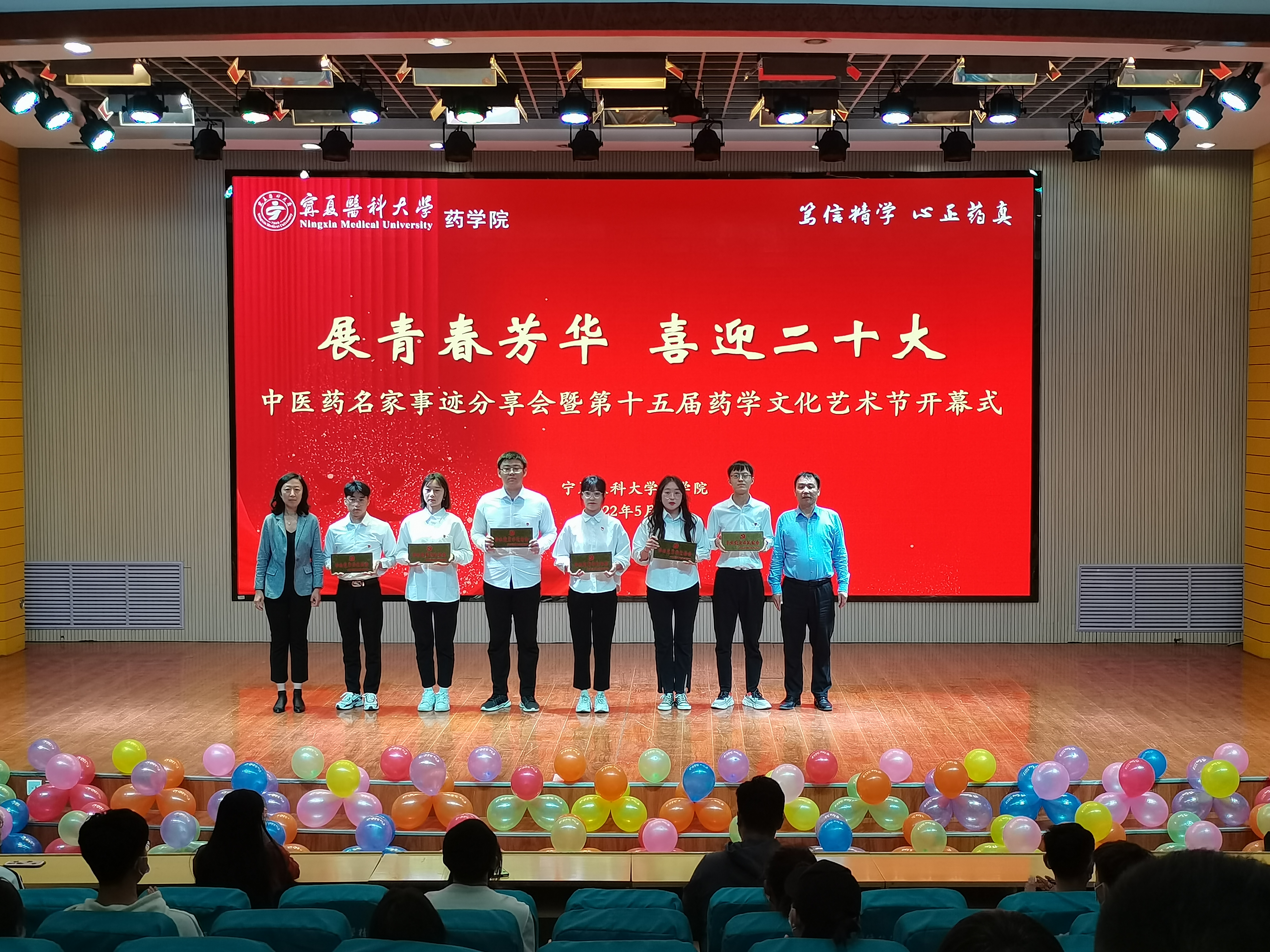 5月6日晚上,为进一步持续加强学风建设,引领同学们树立专业认同,端正学习态度,同时丰富校园文化生活,药学院“展青春芳华,献礼二十大”——中医药名家事迹分享会暨第十五届药学文化艺术节开幕式在雁湖校区启思学术报告厅举行。学生处、团委、研究生院领导、药学院领导及师生100余人参加。