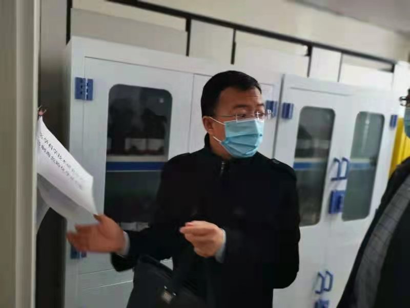 2021年4月13日全区教育系统安全工作督查组对伟德校园治理工作落实情况进行督查,资产管理处处长魏振斌陪同督察组成员。自治区教育厅学生处张少华副处长等人员对伟德实验室安全工作进行了抽查。