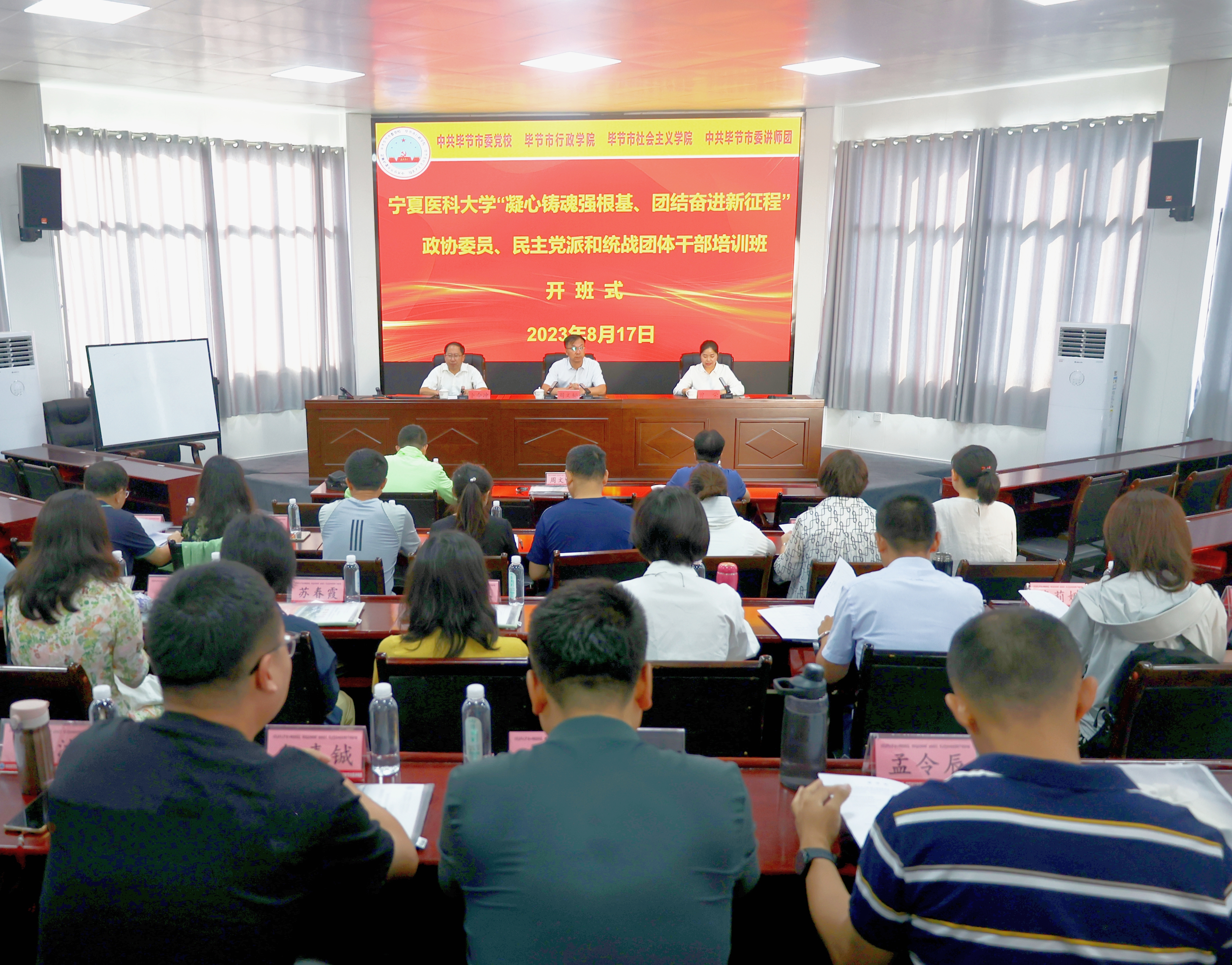 8月16日至22日,学校“凝心铸魂强根基、团结奋进新征程”专题培训班在贵州省毕节市社会主义学院举办。学校副校长杜勇参加培训并作专题授课,毕节市社会主义学院教育长卜令冲出席开班式并致辞,在校工作的自治区十二届政协委员、各民主党派和统战团体班子成员和骨干参加培训。