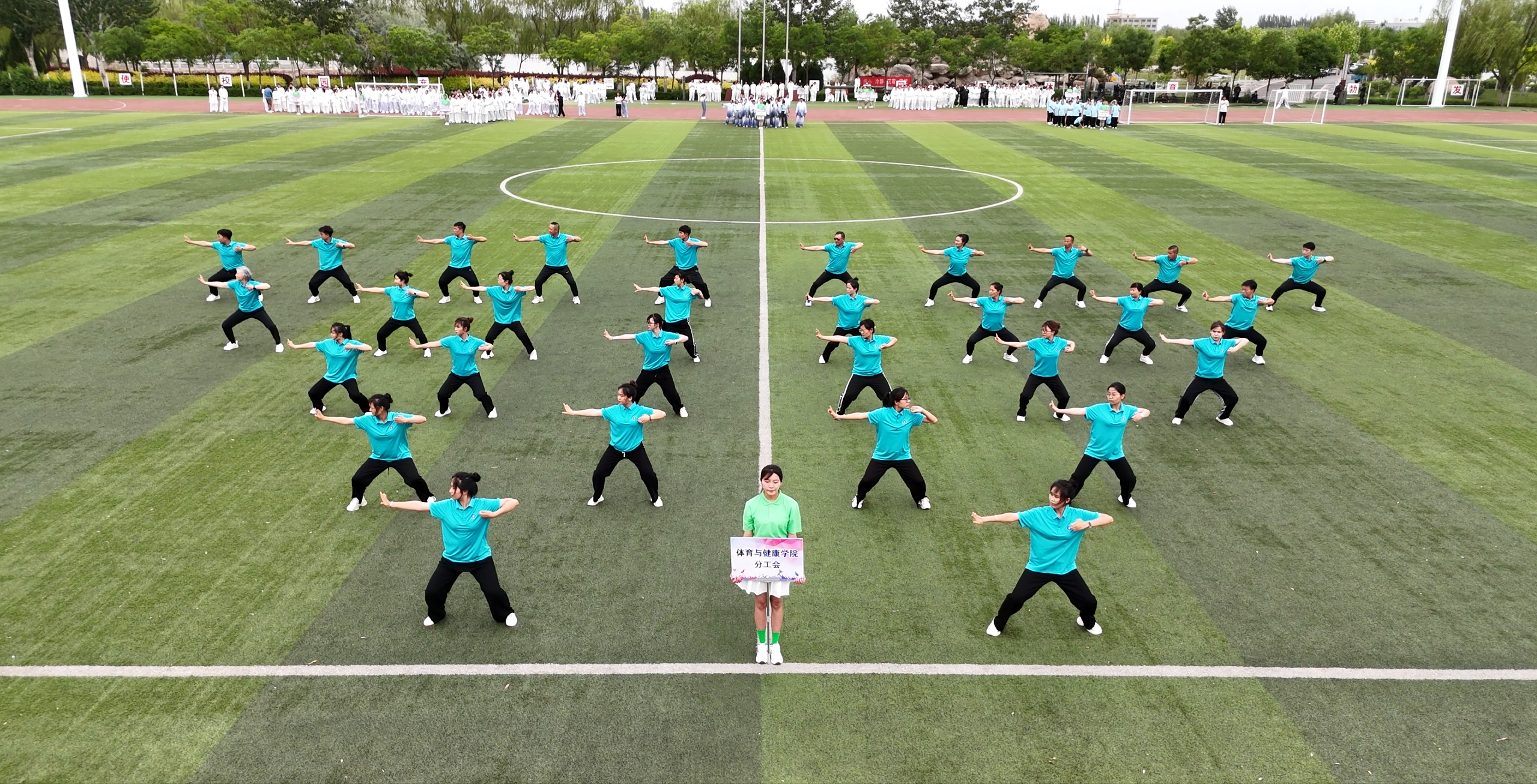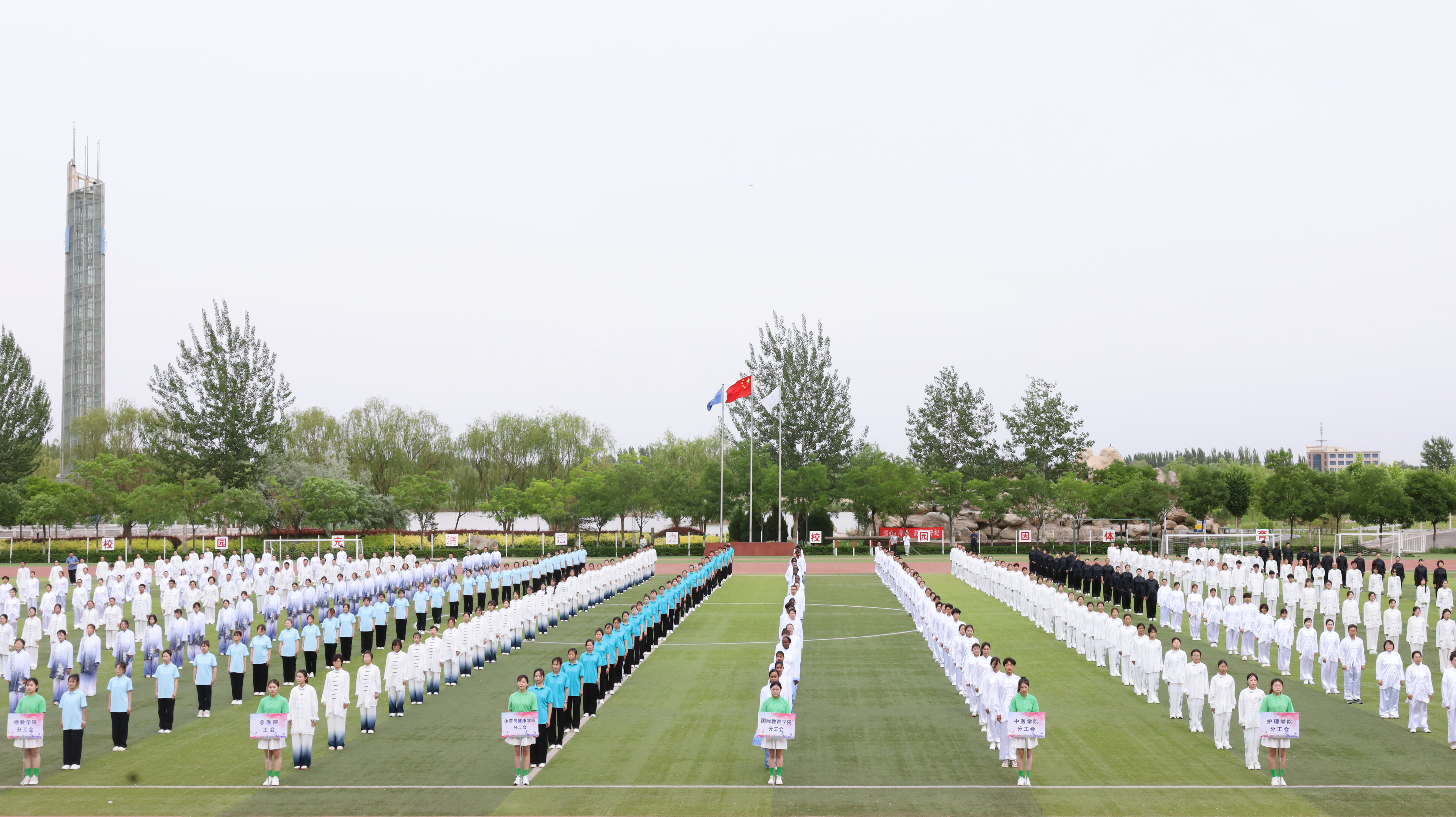 5月29日,由学校体育运动委员会主办,工会、学生处、团委承办,体育与健康学院和中医学院协办的“阳光体育润身心 岐黄薪火共传承”八段锦比赛在雁湖校区体育场举办。学校副校长杜勇、相关部门(单位)负责人及15支代表队400余名师生参加。