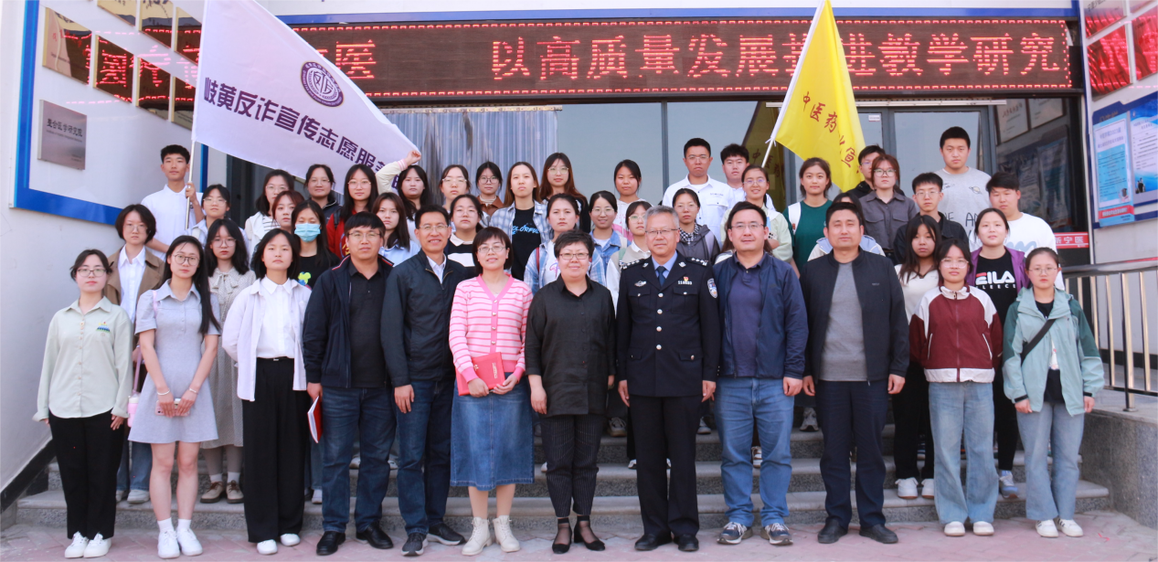 仪式为中医药文化宣讲志愿服务队、岐黄反诈宣传志愿服务队授旗,并聘请学院中医临床基础系段永强教授、胜利街派出所陈全宁警官分别担任两支队伍的指导教师。会上,学院党委书记李颖表示,两支宣传志愿服务队接过旗帜就等于接过了使命与责任,希望志愿者们能“备好课”“讲好课”,以中医药文化宣讲和防诈反诈宣传为己任,在志愿活动中发光发热。