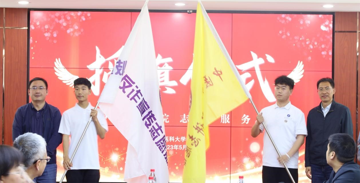 5月12日,中医学院于怀仁楼会议室举行志愿服务队授旗仪式。学生处、校团委负责人,学院领导、教师代表,胜利街派出所陈全宁警官,学院辅导员及青年志愿者代表等50余人参加仪式。