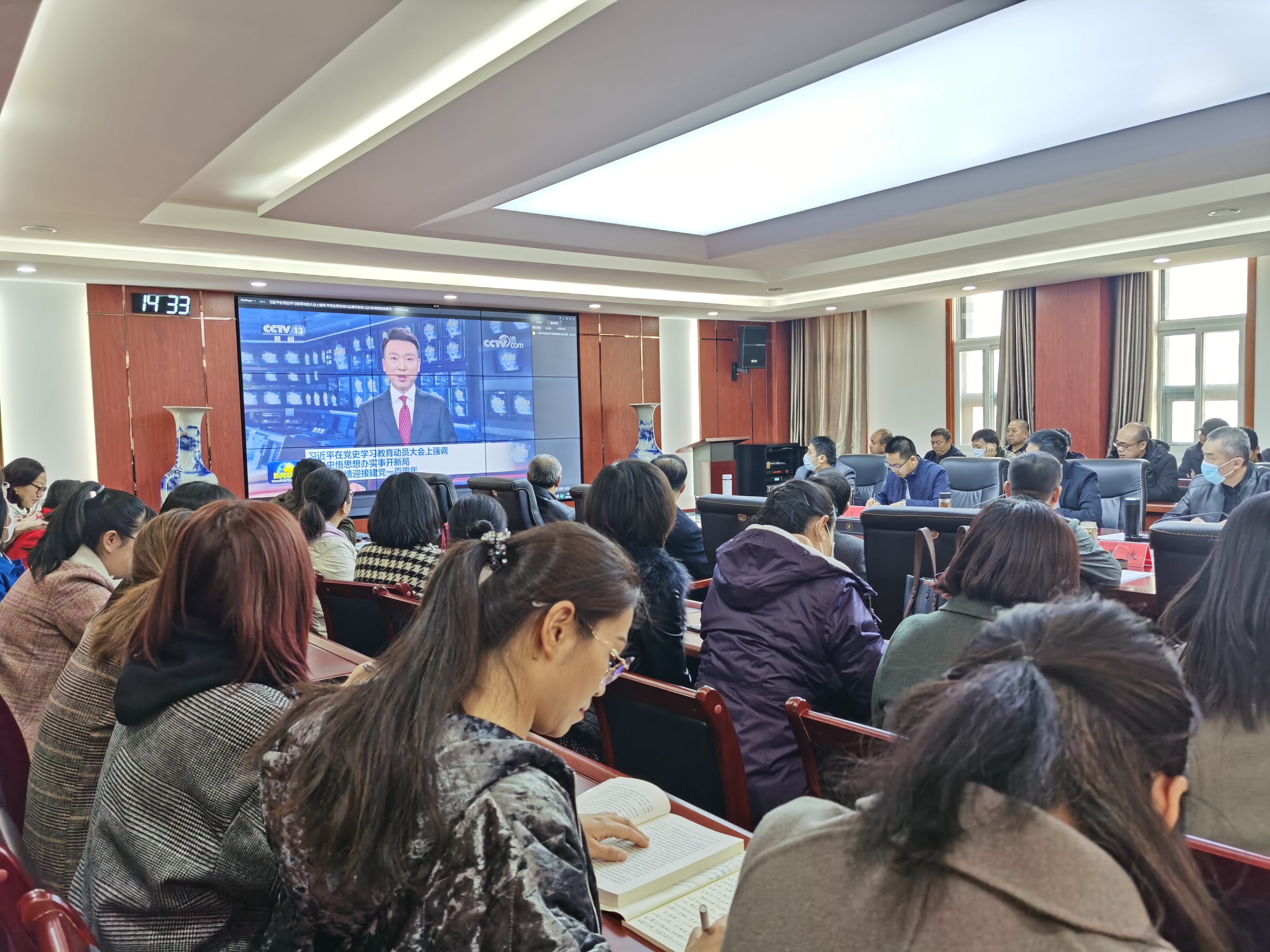 会上,全体教职工共同观看了《习近平在党史学习教育动员大会上强调 学党史悟思想办实事开新局 以优异成绩迎接建党一百周年》学习视频。钱月慧副书记传达了党中央《关于在全党开展党史学习教育的通知》精神。