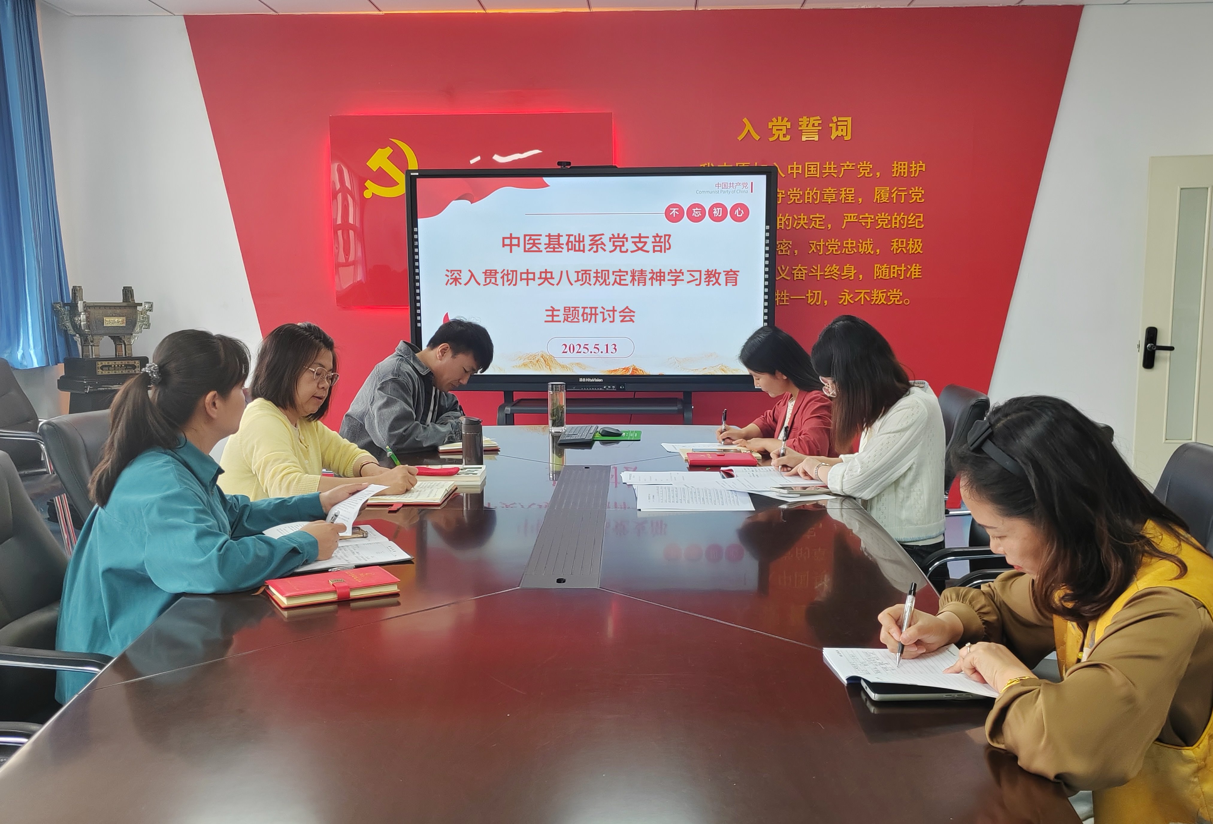 5月13日下午,中医学院中医基础系党支部在怀仁楼党员之家召开深入贯彻中央八项规定精神学习教育主题研讨会,党支部全体党员参加。