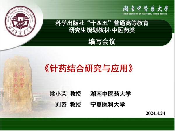 4月24日晚上,科学出版社“十四五”普通高等教育研究生规划教材《针药结合研究与应用》编写会议在线上顺利召开。会议由教材第一主编、国家“万人计划”教学名师、湖南中医药大学常小荣教授担任主持,科学出版社中医药分社首席策划郭海燕副编审莅临指导,我院郭斌教师也是此教材的副主编,全体编委及工作人员40余人参加了会议。针药结合专家学者齐聚一堂,共商教材编写大计,为推动中医药高层次人才培养贡献智慧和力量。