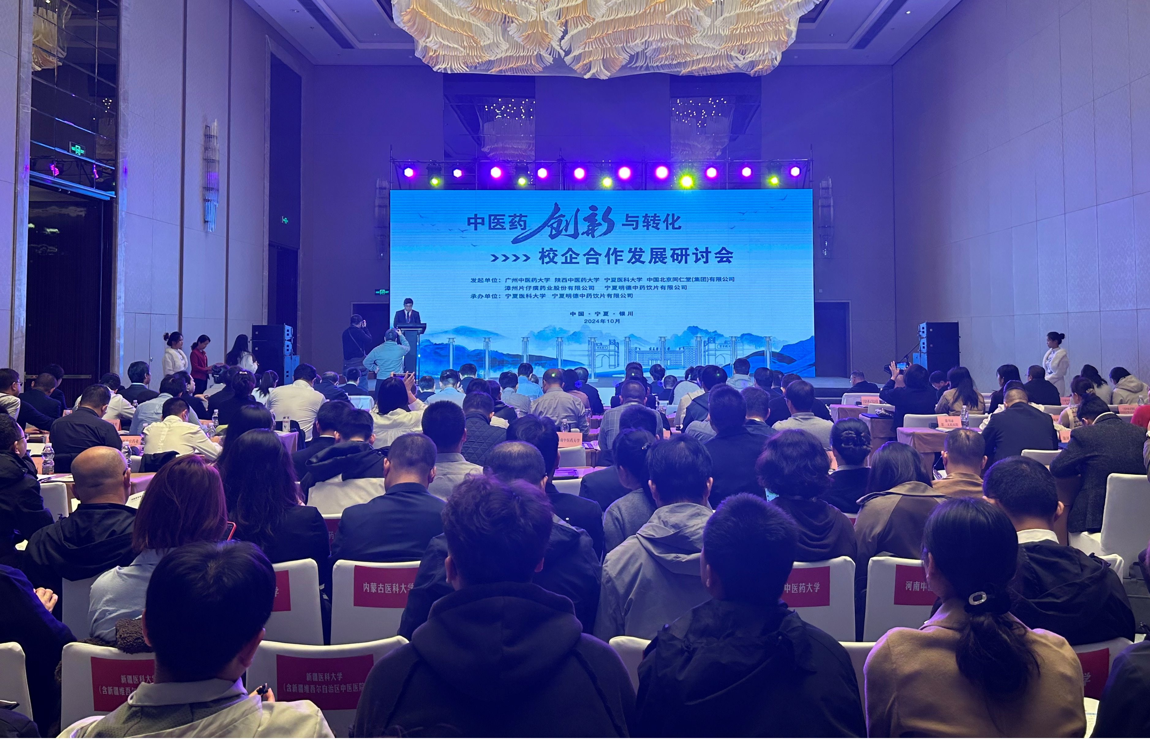10月26日,由广州中医药大学、陕西中医药大学、伟德国际1946源于英国、中国北京同仁堂(集团)有限公司、漳州片仔癀药业股份有限公司、宁夏明德中药饮片有限公司联合发起,伟德国际1946源于英国、宁夏明德中药饮片有限公司承办的中医药创新与转化——校企合作发展研讨会在银川顺利召开。自治区政协主席陈雍出席开幕式。自治区科学技术厅副厅长桑长清,学校党委副书记、校长姜怡邓,学校党委常委、副校长刘志宏,全国各地近50家高校和药企相关负责人参加会议。